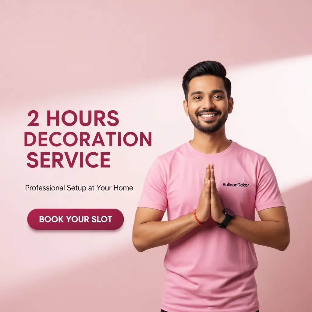 Decoration is an indispensable part of any celebration. Birthdays, anniversaries, baby showers, newborn welcome decorations. You name it and we have it all. Our professionals work tirelessly to bring the vision you’ve seen, to life. A little touch of decoration can add magic to your celebration. Colourful vibrant balloons decorations add a hint of happiness and create a celebratory mood for you and your guests. In today’s time of social media, it's not uncommon to go all out in your next celebration. Choose us and you will certainly get the tag of “the best host.” Guests will be left in awe and you will certainly be showered with numerous compliments. Decorations are an integral part of your special day and we want to make it extra special here at Balloondekor. What better way to showcase your love towards your beloved than showering them with the best decorations available near me.