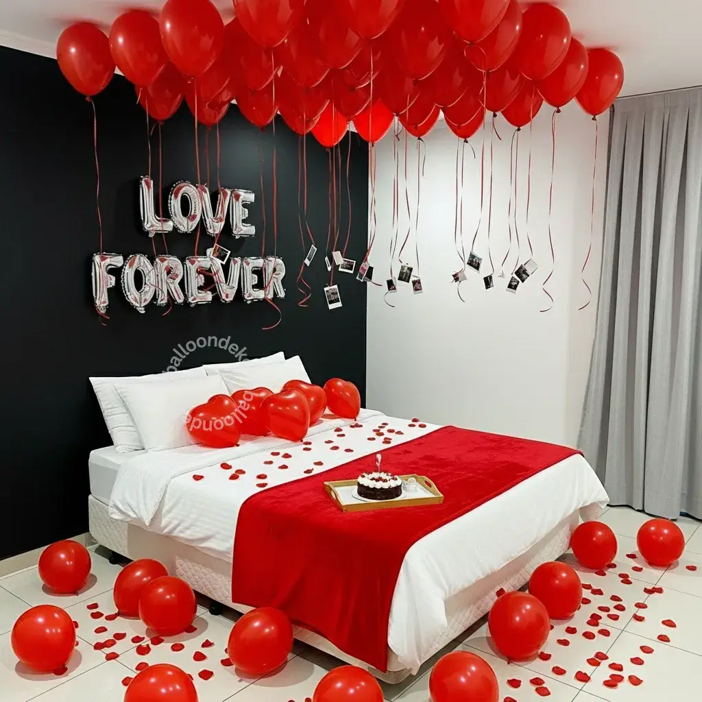 Soft lights and red balloons gave a romantic feel. The decoration made our Valentine night magical. Keep it up guys good job .